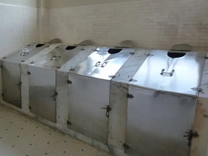 I am strictly a shower type of guy. The concept of spending time very slowly dissolving in a tub full of hot water sounds like some kind of cruel punishment to me. And I don't care if the said water is warmed geothermally and flows directly from a hot spring. I'll happily swim and dive (both risky propositions in the tubs, even the big ones), but just sitting and relaxing for hours sounds painfully boring. However if you don't mind being submerged and massaged by a bath assistant with a scary looking loofah, which you can supposedly take home later (the loofah not the assistant), there are still some bathhouses open. If you don't quite know how to use public bath, National Park Service shows you a film from the 70s (at least judging by the hair styles) to get you comfortable with the idea. The movie is full of clever shots and manages to be lewd without showing much skin. No one will be offended if you wear a bathing suit, it patiently explains. And in case you are wondering: the original whirlpool does look like a giant egg beater with which you have to share the tub. Very scary.