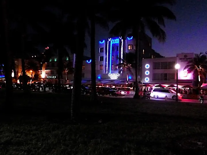 Throngs of scantily dressed black teenagers celebrating the end of Urban Beach Week make the old art deco Ocean Drive alive and hip. Restaurants' outdoor seating is set up on both sides of the walkway, perfect people watching. We sip our drinks and slowly get pulled into a never ending party mood.