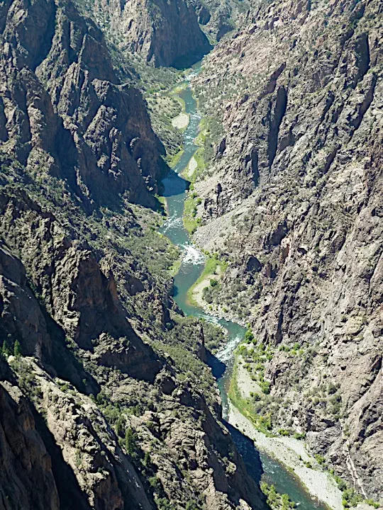 It was supposed to be an easy 2 mile loop to conclude a wonderful day at Black Canyon of the Gunnison park. I managed to convince Natalia that we do not really want to descent to the river which apparently involves sliding on a talus and 80 feet of chain. And I was quite proud of my accomplishment when we heard this strange noise. Something was moving through the bushes. Sounded bigger than a chipmunk. I looked around and here it was. A bear. Sitting in the bushes and looking at us curiously. We did not see it at first. But he made sure we knew he was there.