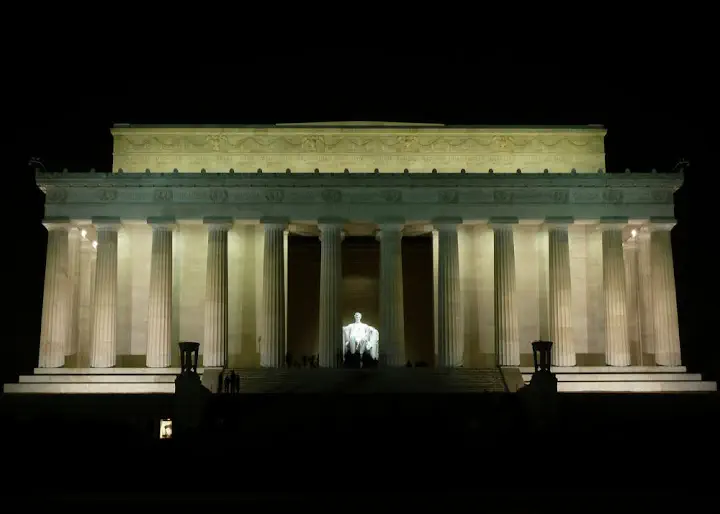We time our walk along the mall so that we get to the Lincoln Memorial after dark. This is my favorite place in Washington. Reading the Gettysburg Address here never gets old. I wish we could get back to the era of political speeches short enough and meaningful enough so that they can be safely engraved. Lincoln of course still looks the same, despite being photographed with ever-improving digital cameras. He glances calmly towards the government of the people, by the people, for the people running its dirty business on the opposite side of the mall. Somehow it manages to make one more certain that America is going to survive the demise of the printed media.