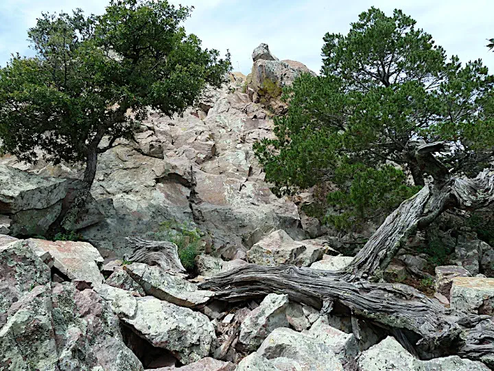The hike is quite strange. Normally we expect that the higher you go the less vegetation and wildlife you encounter. Tatras in Poland are classic example. Hiking there you pass all the zones from farms through mixed forest, to evergreens, to grasses and barren rock. Chisos are very different. You start from the desert floor with nothing much but creosotes and cacti. Then the higher you go the more plants you see. At some point trees start. And even higher you have trees that shed leaves during winter. They end once you get to the rocks. Park literature explains that at one point, several thousand years ago, the desert was actually a forest. Once it started to get hotter and drier forest retreated to higher altitudes.
