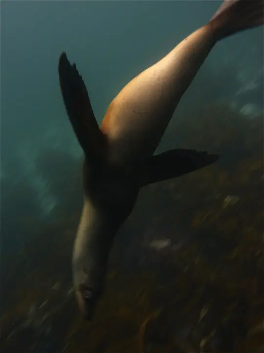 Next, we took a boat to Coronado Islands. It's in Mexico but you don't really cross the border. Occasionally Mexican Navy boards dive boats to remind divers and operators that Mexico is a different country. We didn't encounter sailors, just curious sea lions. Lean and wide-eyed, swimming toward divers and making tight U-turns in the last possible moment.