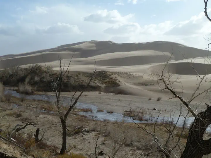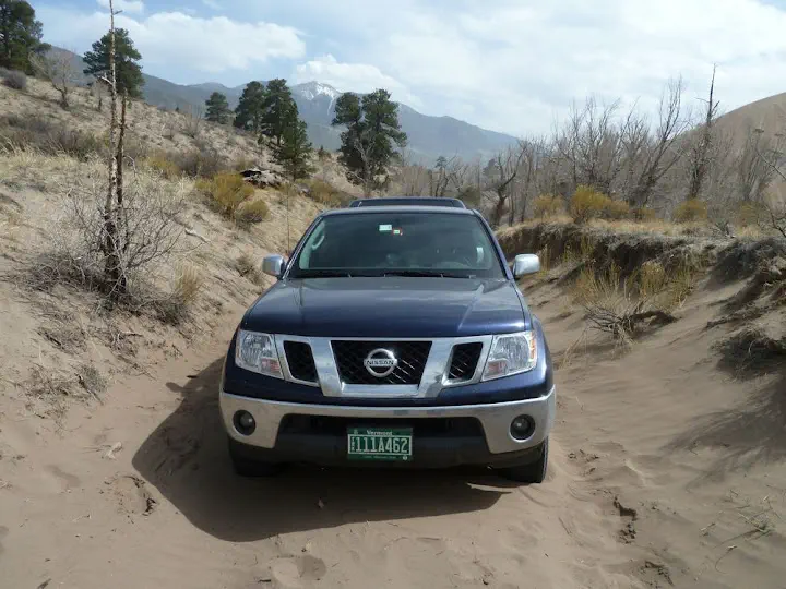 Lowering the pressure in our tires might have helped a bit but it did not help enough. We still found ourself stuck in soft grayish sand on the way to the Medano Lake trailhead. And this time we actually did not try anything stupid. It was not our idea to drive here. I could not even get angry at Natalia who is usually responsible for pushing the boundaries of our comfort zone. This time it was a super nice and extra friendly park ranger. He suggested we try driving unimproved road since wind was too strong to hike the open dunes. I distinctly remember him telling us you can turn back at any point.