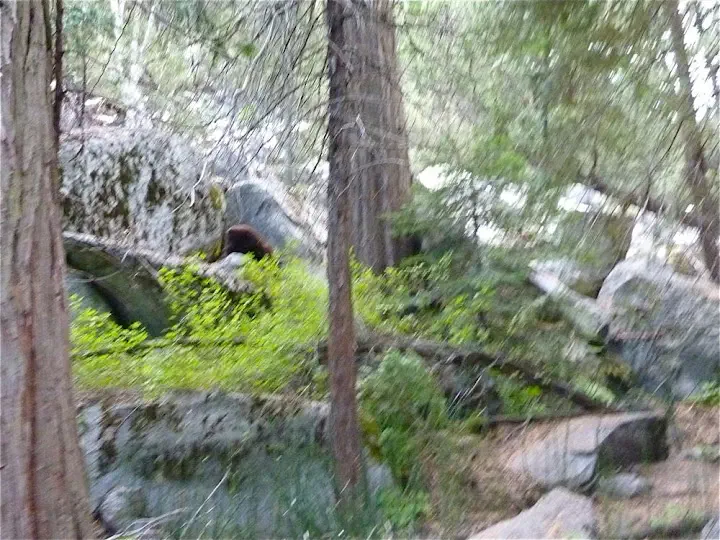 We are hiking in the beautiful Yosemite park. We've spent a month in nearby Mammoth Lakes having hiked almost 100 miles but this is our first close encounter with a bear this year. Even Canada was not that exciting. And they have grizzlies, not Californian black bears.