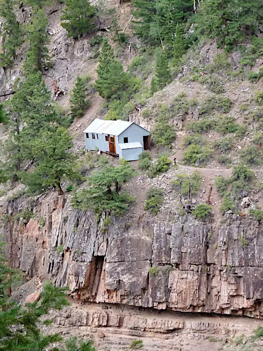 Some of the ghost towns fared quite well: Telluride with its luxury ski resort, Ouray with its hot springs, Durango and Silverton with the last vestiges of a once dense network of narrow gauge railroad continue to do business by attracting tourists. Others decay silently by hiking trails and jeeping roads. There are efforts to preserve structures, some simply far away like Animas Forks ghost town, others completely inaccessible like the Old One Hundred Boardinghouse perched high on the cliff.