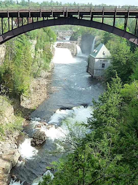 Not long ago Lake Champlain was a busy traffic route dotted with heavy industrial sites like aptly named Moriah. Forests around lakes were cut for timber forming huge logjams in lakes. Ghost towns were left behind iron ore mining operation that once was giving employment to the entire region. Falls of Carillon in the center of Ticonderoga are only half of their former glory; the other half disappeared long time ago inside the long defunct paper mill. Even recreation was doing irreversible damage: heavy 2 tonnes rafts floated down the lower portion of Ausable Chasm where a wall was sunk inside the gorge to keep water level high.
