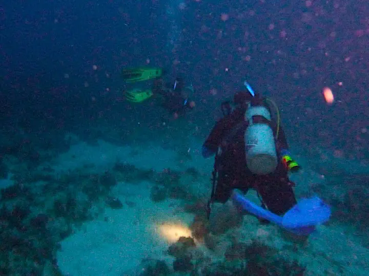 I am hooked and want to dive every night. Despite scaring myself to death when my buddy swims away as I realize I am low on air. But at night stories get taller.