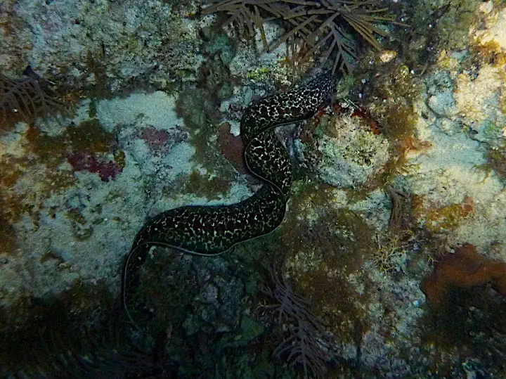 Why dive at night apart from the thrill of overcoming the fear of darkness? Colors look natural in the beam of torch light as the red is minimally absorbed by water at a close range. Some creatures like lobsters, crabs or eels are more active at night venturing into open space from their hideouts. Others like parrotfish get somnolent and instead of darting about simply stay in place.