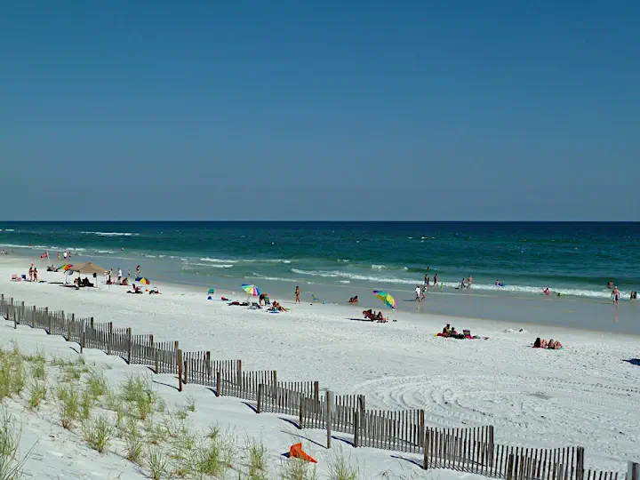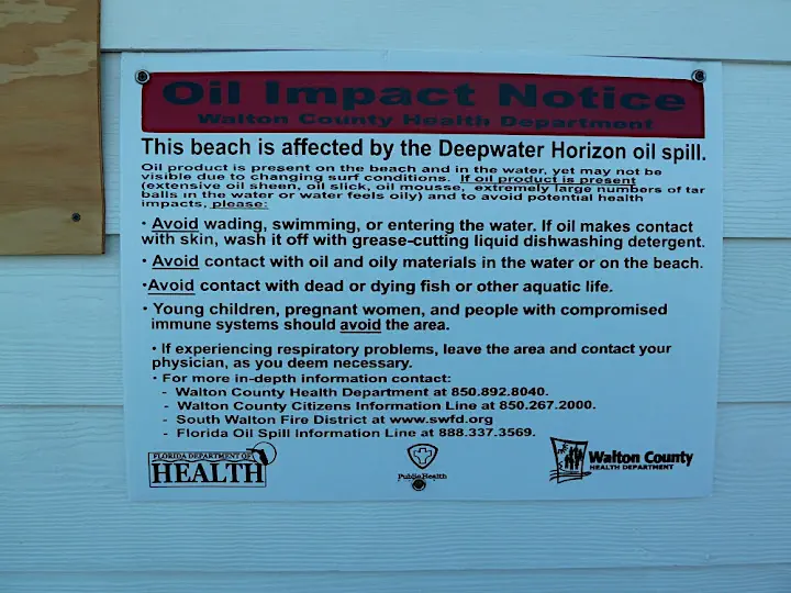 We check out every beach afraid it may be the last oil-free one. At the local restaurants we are told to enjoy our oysters while they last. It's like everyone is aware of some biblical disaster looming around the corner. We do find something on Miramar Beach. There is a notice that the beach has been affected by the Deepwater Horizon oil spill and swimming may be hazardous to your health. Nobody pays any attention to that. No tar balls or oil sheen in sight. As everywhere else parents let small children bathe, teenagers try paddle boards, retirees sit on half-submerged beach chairs.