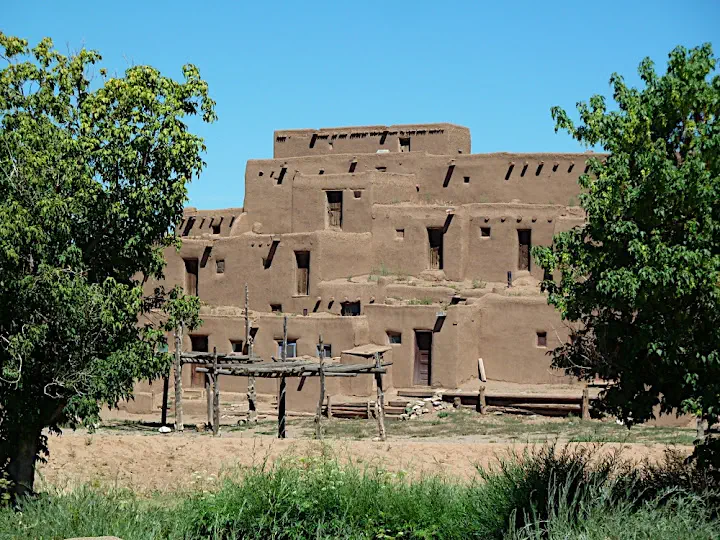 Santa Fe city planners caught on adobe fever in early 20th century when railroad bypassed the city and tourism was supposed to save the place from an unavoidable decline. They succeeded, but at a price. Buildings that did not fit the pattern disappeared. Dressing modern interiors in a pueblo-inspired outside earned the style a derogatory name of faux-dobe. And to boot, the lesson of the Indian building style was lost on white architects: it's about function not esthetics. There is not much sense in retaining the mud color of external walls that is an incident of materials available to original pueblo builders. Important features are flat roofs with a low wall and multiple drains suitable for torrential rains (just imagine what happens to the foundation when 2 inches of rain per hour pour down a sloping roof all at once), thick walls, deep sunken small windows protecting from heat in the summer and cold in the winter. All those features could be recreated with modern materials to a much more interesting end result.