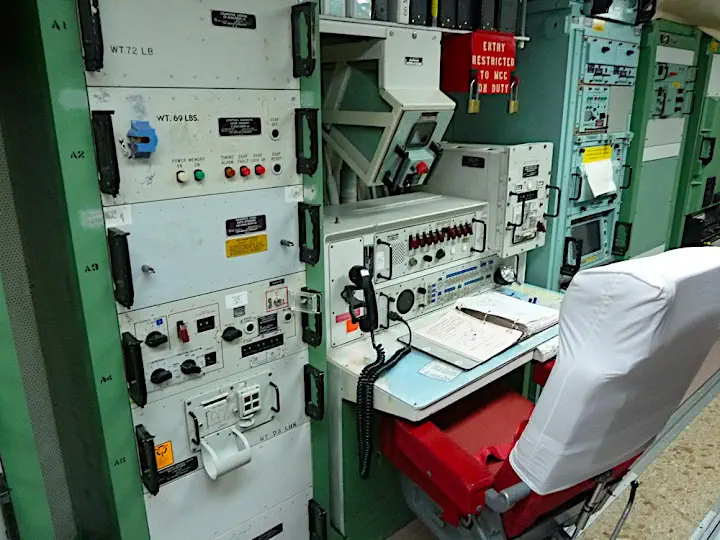 Touring the launch center I cannot shake the impression that I am looking at the stage of a low budget science fiction movie. Rotary phones, some kind of computer-like equipment. Terminals resembling old typewrites. I am not sure what I expected but as an interior of a doomsday machine this place is a letdown. It lacks the grandeur of a setup commissioned to decide the fate of the planet.