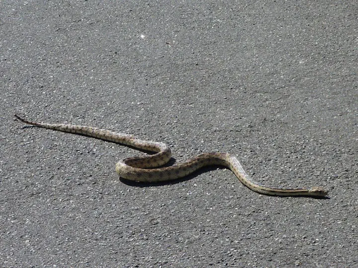 We spent last spring and a good chunk of summer wandering through the deserts in Utah, Arizona and New Mexico. Almost each trail welcomed us with a familiar snake warning, but we saw just one rattlesnake. It was quite well hidden and tolerated us soundlessly while we were having our lunch admiring the Hovenweep ruins. It only got agitated when we suddenly stood up. Its angry rattle was more surprising than scary, but for a couple of days we took our time choosing a place to picnic. And then we started to hike in California where it seems we come acress a snake or two every day.