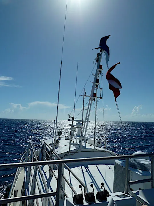 We settle into a routine: food, dive, food, dive, more food, etc. to the tune of 5 dives a day. Food is great, more so when we can see it's all prepared in a tiny galley kitchen on a rocking boat. It takes 2 dedicated people working round the clock to feed 20 divers and 7 crew members and they do an amazing job.